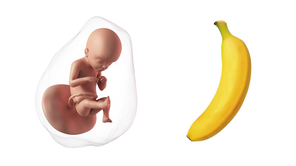 At 11 weeks pregnant, your baby has already reached 2 in (5 cm) in size. Now, his/her head is half the length of the body, but in the coming weeks, the body will grow enough to make up for it. The fetus skin is so thin and translucent that through it you can see an extensive network of vessels. Placental vessels are expanding to provide the fetus with necessary nutrients and oxygen.