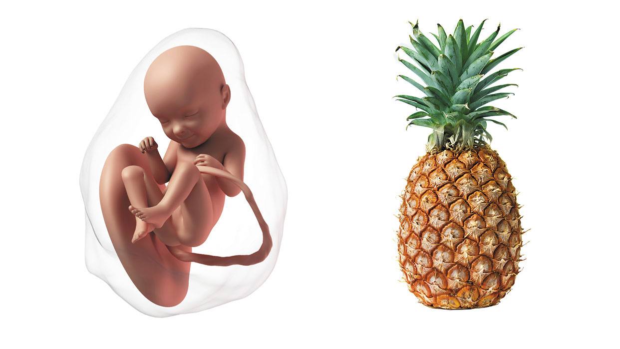At 33 weeks pregnant, your baby is the size of a pineapple.