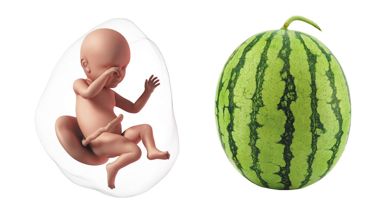 At 40 weeks pregnant, your baby is the size of a mini watermelon.